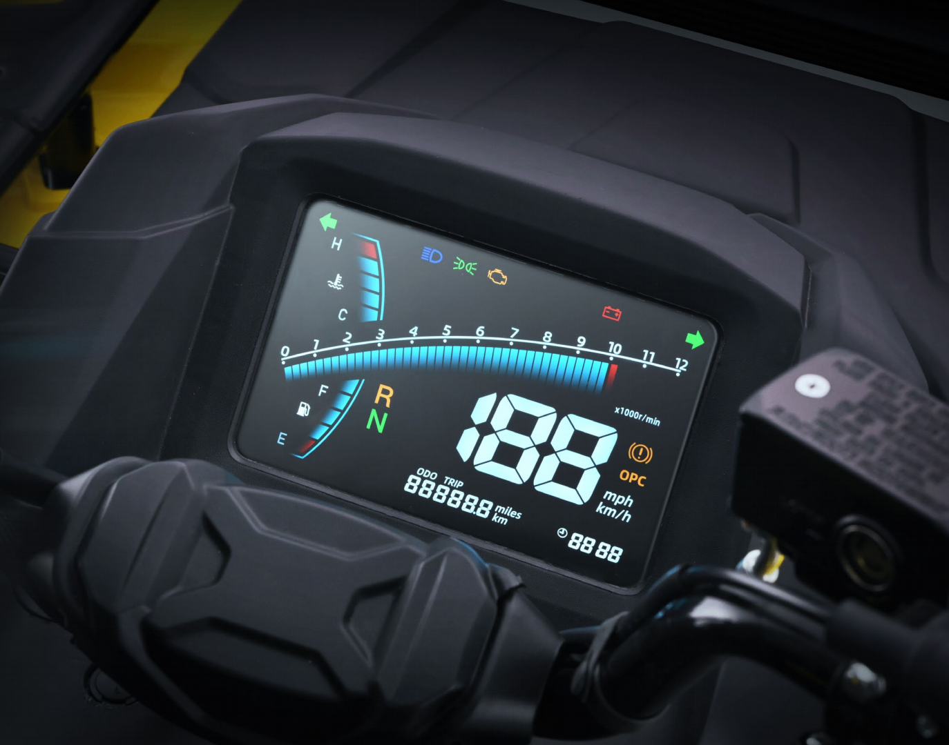7”LCD Instrument Cluster: real-time speed, gear, fuel, and tire pressure at your glance