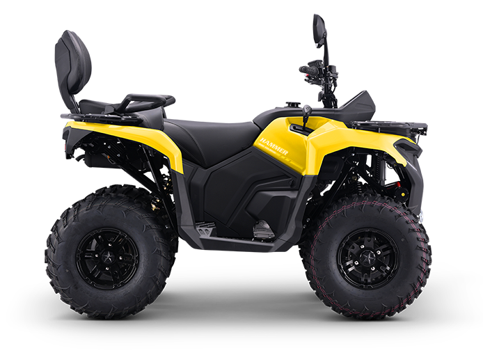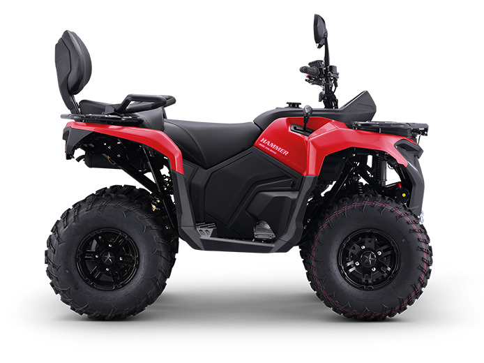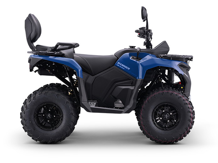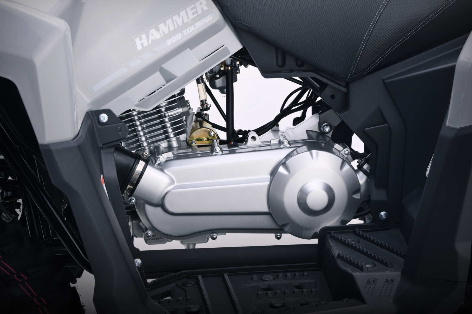 The HAMMER 200 Touring uses a lightweight 196cc oil-cooled engine with simple structure and low maintenance cost. Hydraulic suspension and optimized steering geometry ensure stable handling across rural paths and light off-road terrain. Compact and easy to maneuver, it suits daily commuting, farm use, and outdoor leisure—an ideal and dependable entry-level utility ATV.